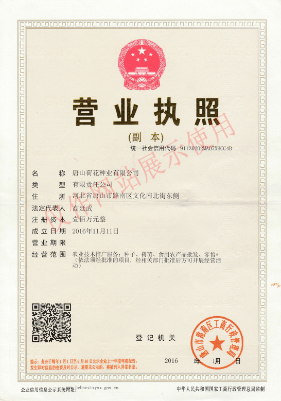 唐山荷花種業(yè)有限公司始創(chuàng)于1984年,一直秉承“科技為先,誠信為本”的發(fā)展指導(dǎo)戰(zhàn)略,注冊(cè)商標(biāo)“荷花”牌,經(jīng)過三十多年的發(fā)展,建立了從親本選育、試驗(yàn)示范、生產(chǎn)檢驗(yàn)、精選加工、推廣銷售及農(nóng)業(yè)技術(shù)咨詢一體化的經(jīng)營體系,目前擁有試驗(yàn)基地、繁育基地、制種基地、及規(guī)模化種子冷貯藏庫,完善了由科研、檢驗(yàn)、生產(chǎn)、銷售各個(gè)配套環(huán)節(jié)。荷花牌系列種子正是我們?cè)趫?jiān)持“誠信、品質(zhì)、開拓、創(chuàng)新”的企業(yè)精神下打造的種子品牌,如今,在全國已形成強(qiáng)勢(shì)品牌效應(yīng),是一個(gè)值得信賴與具有一定影響力的種子品牌,在全國廣大用戶中贏得了良好的口碑和信譽(yù)... ...